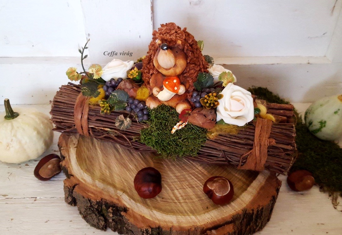 - Őszi asztali dísz termésekből Manó kuckó.